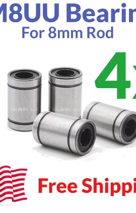 Qty. 4  (4 Pieces) LM8UU Bearings Fits 8mm linear rod, commonly found on 3D Printers Always good to have a few spares on hand before…