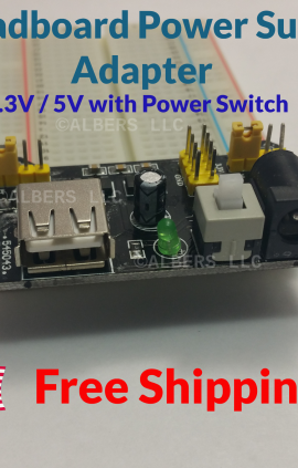 No more awkward alligator clips connecting a bench power supply to breadboard jumpers. Features: Independently switch each side – 5V or 3.3V Multiple options for…