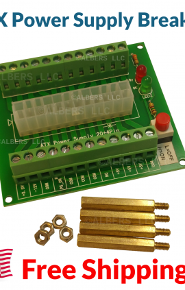 Breakout board for an ATX power supply Built-in power switch and indicator LEDs Includes 4 standoffs and nuts This is a very convenient way to supply…