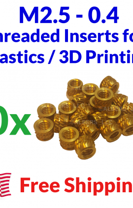 Pack of 50 threaded inserts. These create much more convenient and professional parts than using “captive nuts” (where you have to design a slot for…