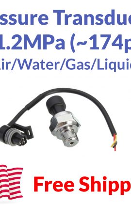 Pressure transducer with G1/4 Threads Input 5VDC Output: 0.5-4.5VDC Material: Steel Working pressure: 0-1.2MPa (approximately 0-174psi) Maximum pressure 2.4MPa Working temp.: 0-85C Response Time <=2ms Suitable…