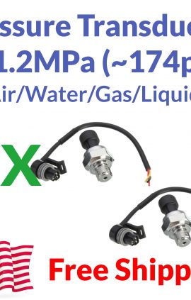 *** 2 Pack *** Pressure transducer with G1/4 Threads Input 5VDC Output: 0.5-4.5VDC Material: Steel Working pressure: 0-1.2MPa (approximately 0-174psi) Maximum pressure 2.4MPa Working temp.: 0-85C…