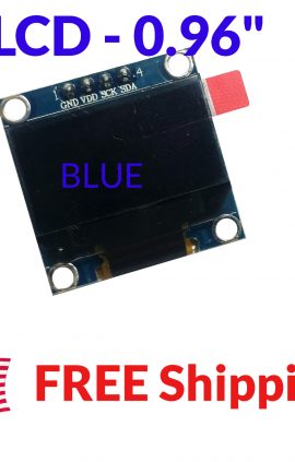 0.96″ I2C / IIC Serial OLED Display Screen with BLUE text Resolution is 128×64 Compatible with Arduino, ESP8266, ESP32, Raspberry Pi, etc.  3.3V or 5V logic level,…