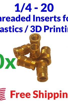 • 10x 1/4-20 Brass Threaded Heat Set Inserts for Plastic 3D Printing Brass Metal